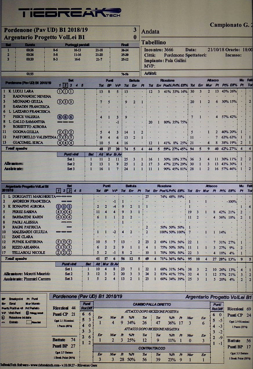 Le friulane raggiungono in classifica Bonafini e compagne, ma quest’ultime hanno dimostrato buone cose (71% in ricezione e 9 punti a muro) nonostante la sconfitta. Momento chiave è risultato essere il secondo set, quando le friulane, dietro di cinque punti a metà parziale, sono state in grado di recuperare e ribaltare la frazione.