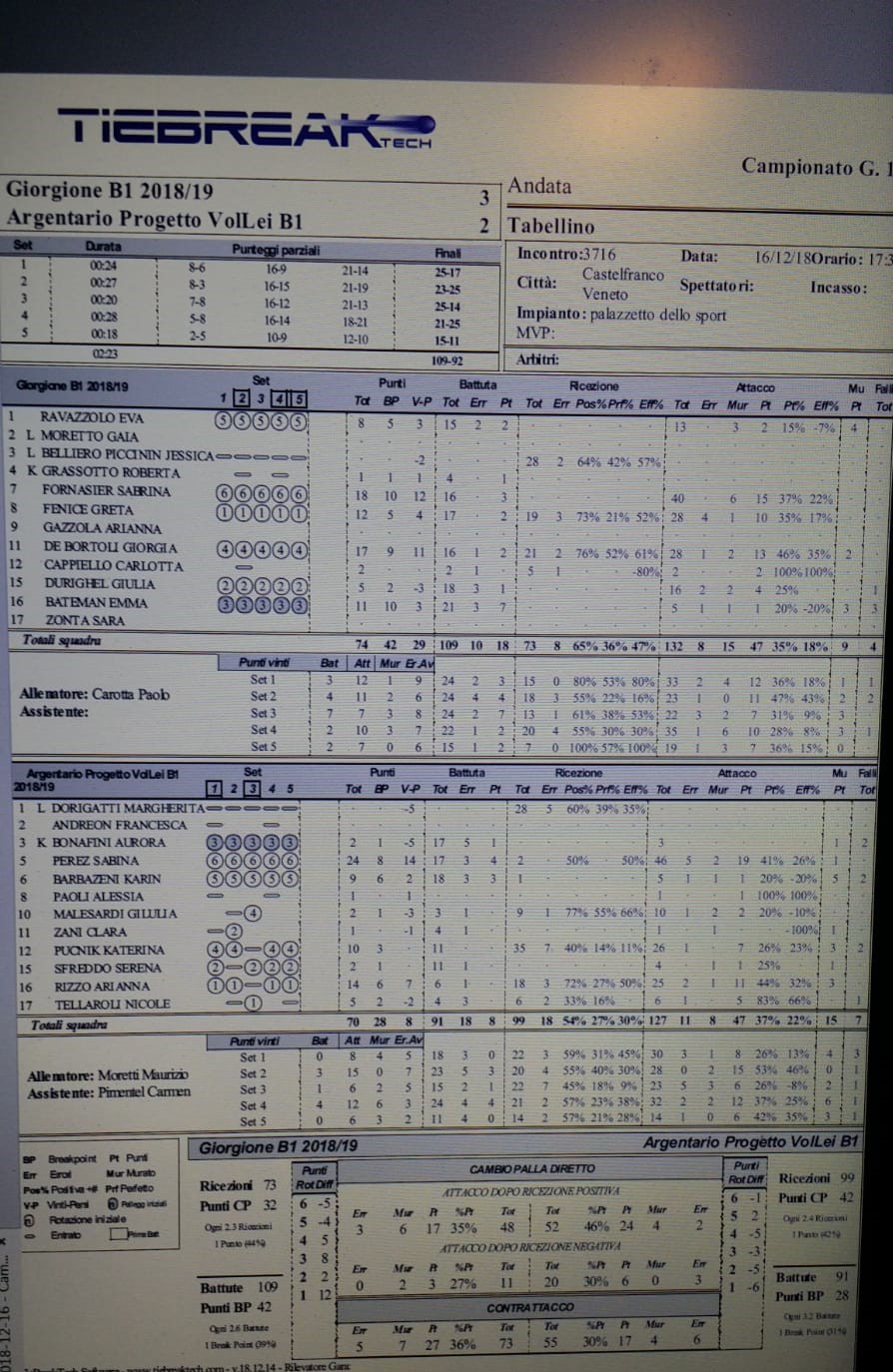 Il tabellino finale mostra quanto di buono fatto vedere dall’Argentario soprattutto a muro. A fine match sono ben 15 i punti contro i nove di quello della Duetti Giorgione. Per quanto riguarda gli altri fondamentali questi i dati: battuta (18 punti contro 8), ricezione (65% contro 54%) e attacco (35% contro 37%).