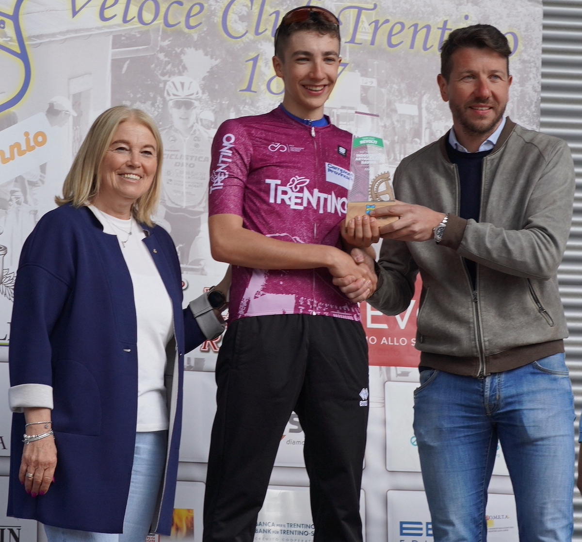 Ad aprire la manifestazione organizzata dal club presieduto da Michele Coser sono stati gli Allievi, chiamati a confrontarsi su un percorso di 52 chilometri, con la salita del Belvedere da affrontare due volte nella seconda parte di gara. Al primo passaggio è transitato al comando il portacolori del Club Ciclistico Forti e Veloci Brandon Fedrizzi, che ha promosso una fuga di un drappello di sei corridori, tra i quali i trentini Giacomo Castellan (Montecorona), Gianluca Archetti (Aurora) e Federico Occoffer (Veloce Club Borgo). Fedrizzi ha poi operato un nuovo allungo e ha preso il largo in solitaria, garantendosi la settima vittoria della stagione. Alle sue spalle è andata in scena la volata per gli altri due gradini del podio e, soprattutto, per la maglia di campione trentino, che è finita sulle spalle dell’atleta della Montecorona Giacomo Castellan, lui che nelle passate stagioni aveva già indossato la maglia porpora nella mountain bike. Castellan ha chiuso terzo sul traguardo in salita di via Val Gola, seguito a ruota da Gianluca Archetti dell’Aurora (quarto) e da Federico Occoffer del Veloce Club Borgo (quinto).